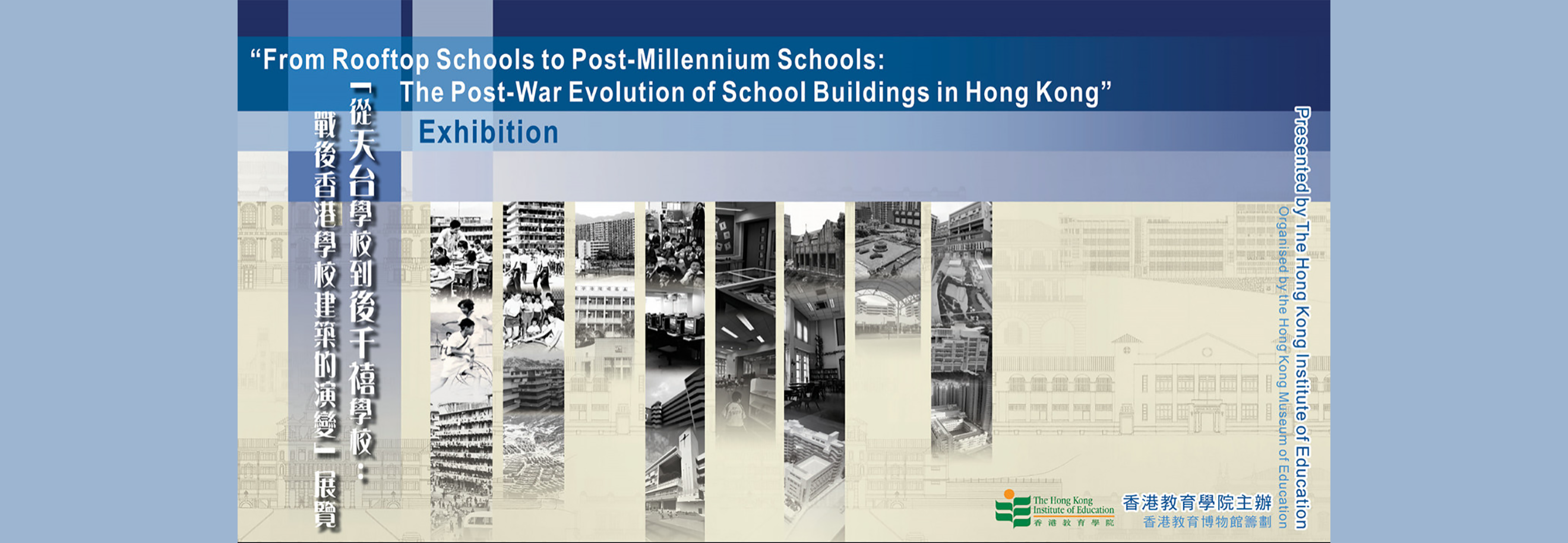 This exhibition traces the building designs of primary and secondary schools in Hong Kong since 1945, with an emphasis on both public schools and schools with government subsidies or grant aid in urban areas, to examine how these designs coincided with educational developments and concepts at different periods. The designs include; public schools, "rooftop" schools, "ground floor" schools and "top floor" schools during the 1950s; primary schools in "annexe" and "matchbox" forms in housing estates in the 1960s and the 1970s respectively, "standard-design" primary schools, and secondary schools with "semi-interlocking" and "interlocking" structures in the 1980s, "flexi-type" schools in the 1990s, and "millennium" and "post-millennium" schools in the early 21st century.